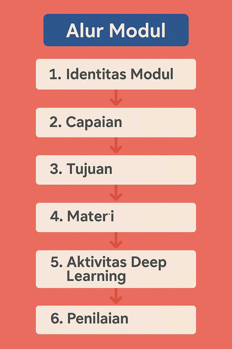 Agar pembelajaran lebih terarah, modul ajar memiliki struktur sistematis. Berikut elemen utamanya: